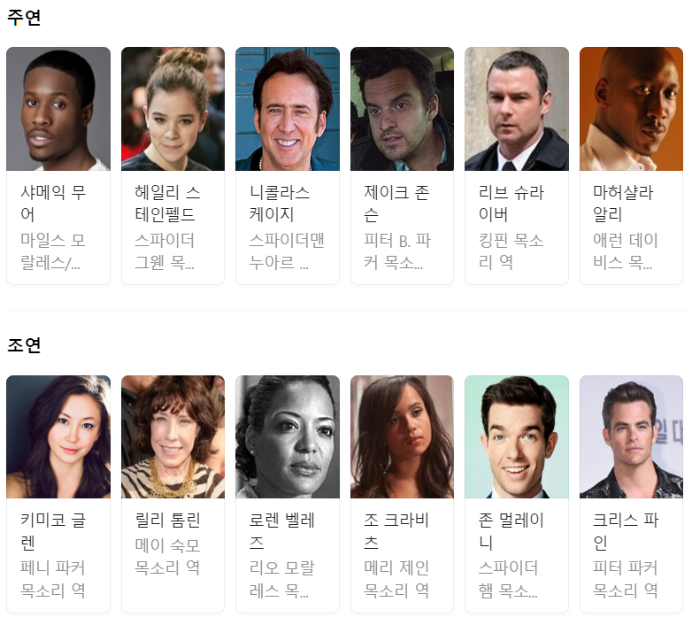 스파이더맨 뉴 유니버스 출연진